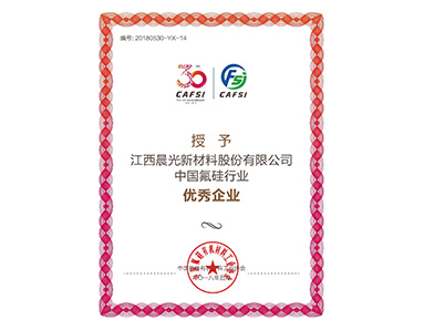 China Silico-fluorine Organic Materials Industry Association awarded the honor of "China silico-fluorine industry excellent Enterprise".