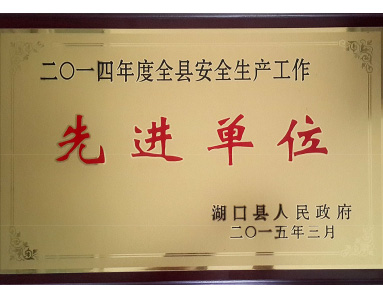 Hukou County People's Government awarded the honor of "2014 Advanced unit of safety production work in the county".