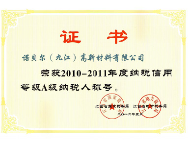 Won the honor of "2010-2011 annual tax credit grade A taxpayer".