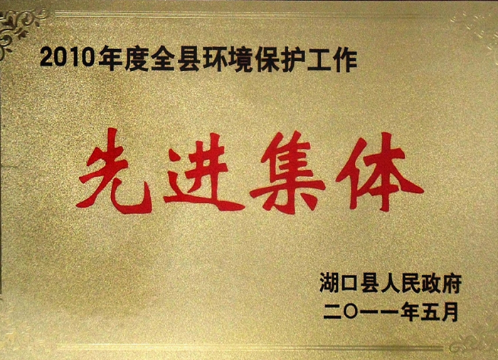 Hukou County People's Government awarded the "2010 county environmental protection work advanced collective" honor.